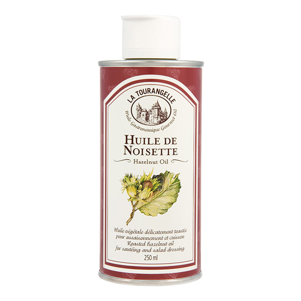 La Tourangelle tuesta suavemente las avellanas para concentrar el aroma y después las prensa en pequeños lotes. Luego el aceite se decanta y se envasa para asegurar limpieza y estabilidad. Así se consigue un sabor nítido y constante.