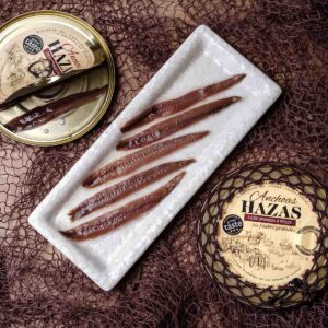 Capturadas en la costera de primavera con artes de cerco sostenibles, estas anchoas del Cantábrico Hazas se someten a un salado lento de más de ocho meses en barrica.