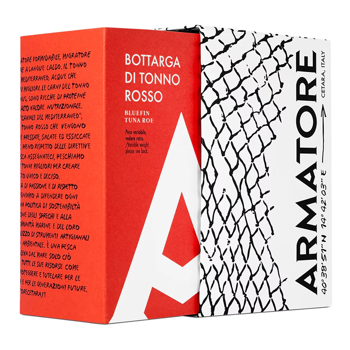 Esta botarga de atún rojo en aceite de oliva Armatore se elabora a partir de huevas seleccionadas de Thunnus thynnus, curadas lentamente y conservadas en aceite de oliva suave para mantener su textura firme y su perfil aromático limpio. El resultado es una especialidad marina de sabor profundo, salinidad elegante y gran persistencia, pensada para uso gastronómico preciso.