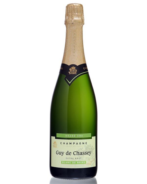 El Champagne Blanc de Noirs Extra Brut Guy de Chassey es una cuvée Grand Cru elaborada exclusivamente a partir de uvas tintas (Pinot Noir) vinificadas en blanco, que expresa potencia, profundidad y una notable precisión mineral. Su dosificación Extra Brut realza la pureza del vino base y la identidad del terruño.