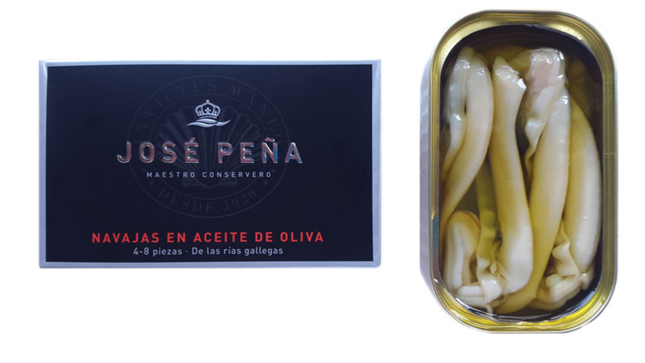 Las navajas en aceite de oliva José Peña son una conserva gourmet pensada para quienes desean comprar navajas en aceite de oliva online con calidad superior, origen gallego y elaboración artesanal. Seleccionadas cuidadosamente y conservadas en aceite de oliva suave, mantienen una textura firme y un sabor marino limpio que respeta el producto sin artificios.