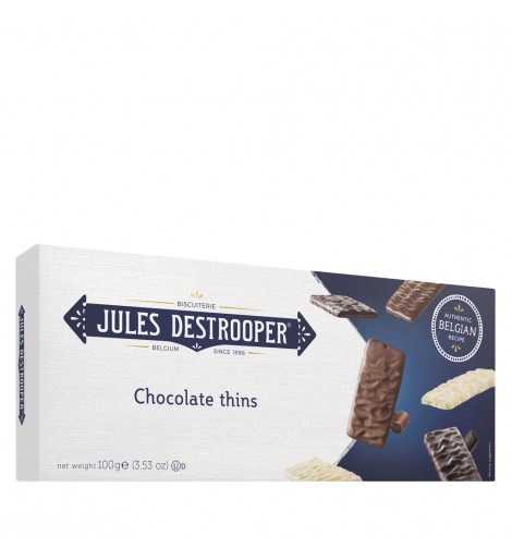 Las Galletas Finas Belgas Recubiertas de Tres Chocolates Jules Destrooper combinan la delicadeza de una galleta fina artesanal con una cobertura equilibrada de chocolate negro, con leche y blanco. Crujientes, elegantes y perfectamente armonizadas, ofrecen una experiencia golosa y refinada, fiel al saber hacer belga en galletería y chocolate.