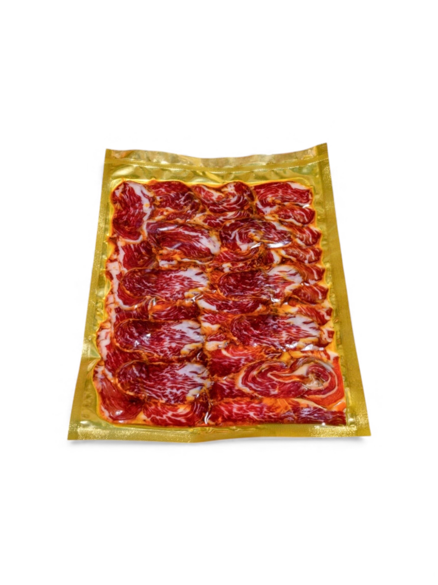 Lomito ibérico de bellota loncheado, fino y equilibrado.