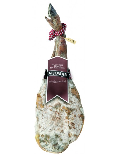 La paleta de cebo 50% ibérica Aljomar procede de cerdos ibéricos alimentados con cereales y se somete a un escrupuloso proceso de selección para garantizar regularidad, jugosidad y sabor. Con más de dos años de curación en bodega, esta paleta ofrece un perfil equilibrado y aromático, ideal para consumo habitual y celebraciones.