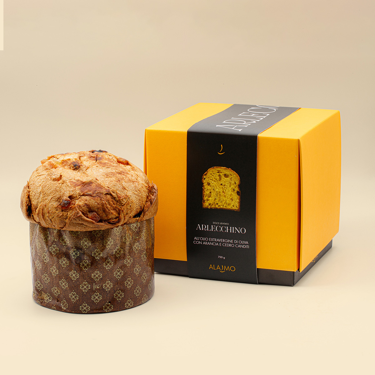 El Panettone Arlecchino Alajmo 750g reinterpreta el panettone tradicional italiano con la elegancia propia de la casa Alajmo. Desde el primer corte se aprecia una miga alveolada y ligera, resultado del uso de aceite de oliva virgen extra en vez de mantequilla. En su interior, dados de naranja y cidra confitadas aportan una dulzura cítrica equilibrada y muy fragante. Así, el Panettone Arlecchino Alajmo 750 g consigue un perfil limpio, expresivo y fácil de disfrutar en cualquier momento festivo.