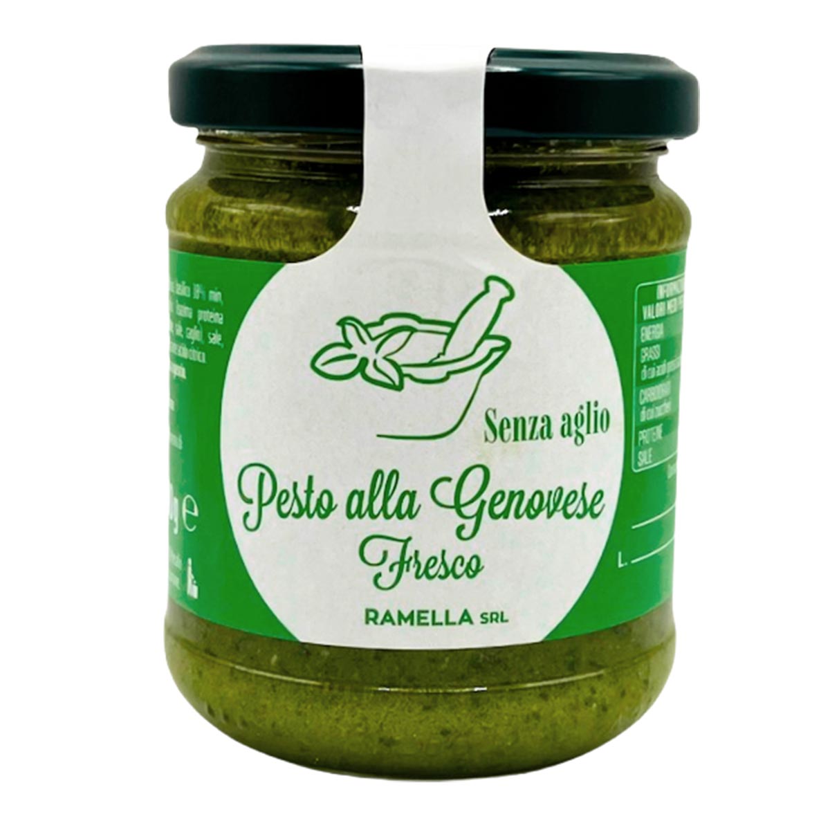 El Pesto alla Genovese Fresco sin Ajo Ramella 180 g es una elaboración premium creada para quienes buscan el sabor clásico del pesto genovés con una textura fresca, equilibrada y más ligera.