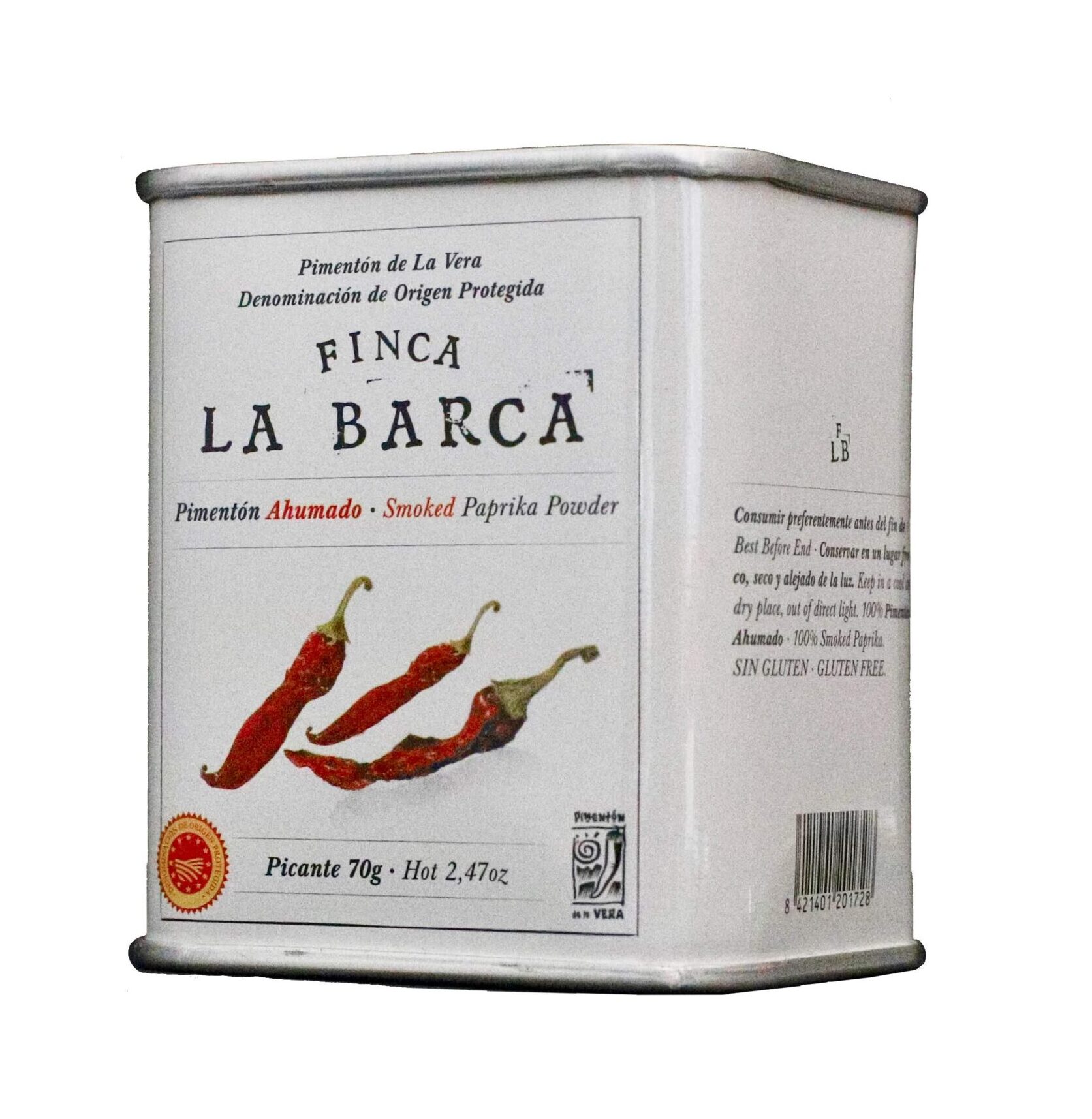El Pimentón Ahumado DOP La Vera Picante Finca La Barca 70 g es una especia gourmet elaborada con pimientos rojos seleccionados y secados lentamente al humo de encina, siguiendo la tradición centenaria de La Vera.