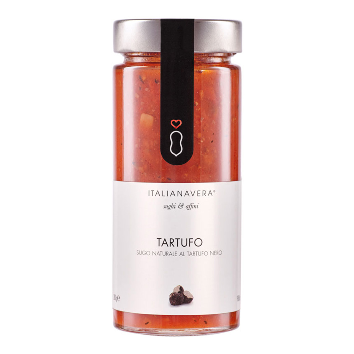 La salsa de tomate con trufa negra Italiana Vera es una creación artesanal que combina la frescura del tomate madurado al sol con el aroma profundo y envolvente de la trufa negra.